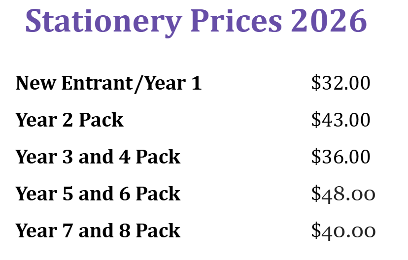 Stationery Packs are available to purchase from the school office